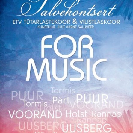 19. jaanuaril kell 19 toimub Lauluväljaku Klaassaalis ETV tütarlastekoori ja vilistlaskoori „Talvekontsert“, kus esitletakse ka koori uut salvestist – koostöös Klassikaraadioga salvestatud CD-d “For Music”.