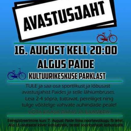 16. augusti õhtul toimub Paide linna noortevolikogu eestvõttel Avastusjaht, mis on hea võimalus sõita rattaga, otsida kontrollpunkte ja teha pilti.