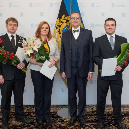 President Toomas Hendrik Ilveselt said täna Vabariigi Presidendi Kantseleis noore teadlase preemia erandkorras kaks teadlast – botaanik ja mükoloog Leho Tedersoo ning meedia ja kommunikatsiooni uurija Andra Siibak. Esmakordselt andis president Ilves.
