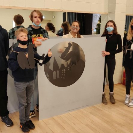 Lauluväljaku akendel on võimalik vaadata noorte robootikute varjuteatrit