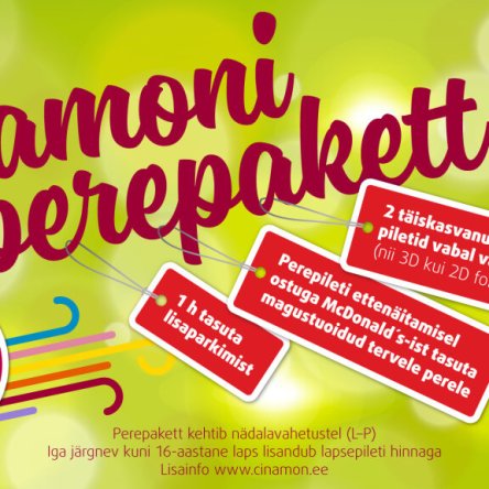 Kuna kogu perega veedetud aeg on kvaliteetaeg ning kinos linastuvad õpetlikud ja südamlikud perefilmid pakuvad vahvaid emotsioone kõigile, on nüüd nädalalõppudel võimalik osta.