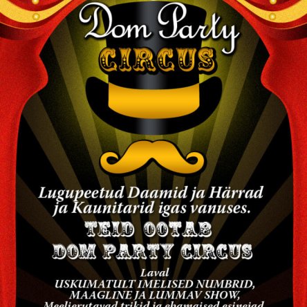 Lugupeetud daamid ja härrad ning kaunitarid igas vanuses, juba sel reedel, 15.veebruaril, olete oodatud linna lõbusaimale peole – Dom Party Tsirkusele!