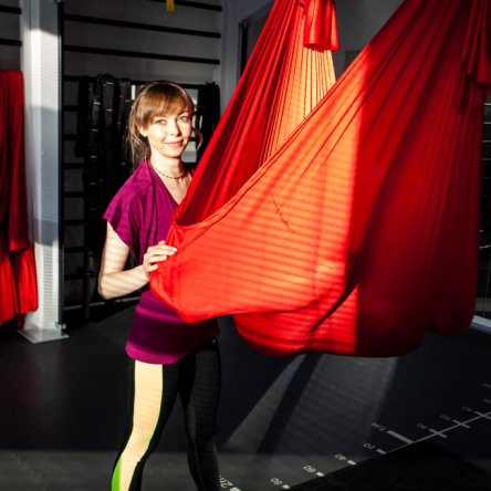 Terase spordikeskuse joogasaalis on Anna Sarapi juhendamise all inimesed, kes on esimest korda tegemas Aerial Yoga`t, sealhulgas ka treeneri sõbrad Põhja-Eesti Pimedate Ühingust,.