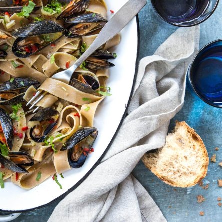 Pärast pikka ja pimedat talvist töönädalat ei ole midagi mõnusamat, kui end õige toidu ja maitsekooslustega nädalavahetuse lainele viia. Ja selleks ei sobi miski paremini kui rustikaalselt elegantne pastaroog sinimerekarpidega.