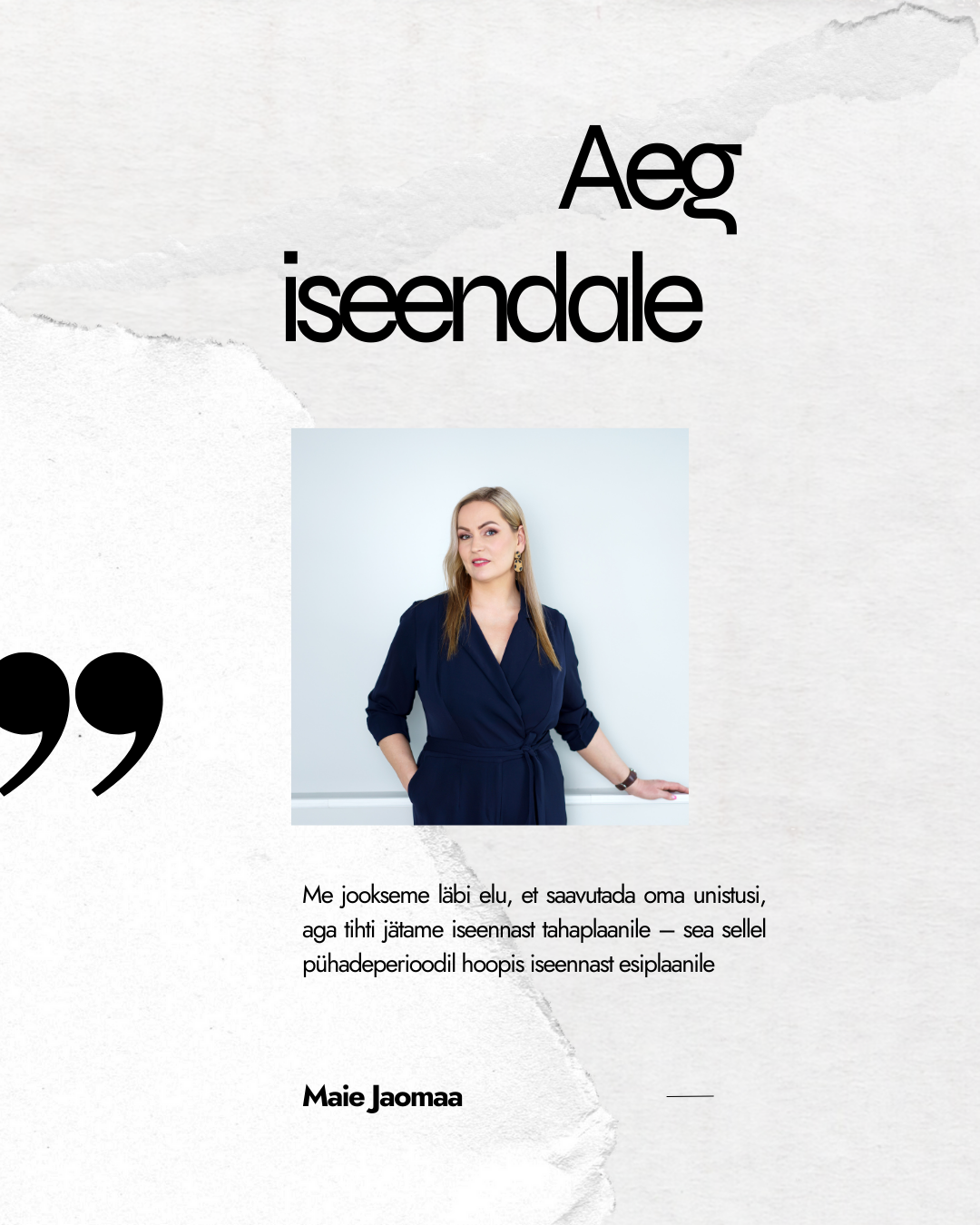 Pühade eel, mil kingituste nimekirjad kipuvad venima ja tempo kiirenema, soovitab Maie teha hoopis vastupidist. “Minu jõulukingi soovitus kõigile on võtta aega, et olla iseendaga. Me jookseme läbi elu, et saavutada oma unistusi, aga tihti jätame iseennast tahaplaanile – sea sellel pühadeperioodil hoopis iseennast esiplaanile,“ ütleb ta.