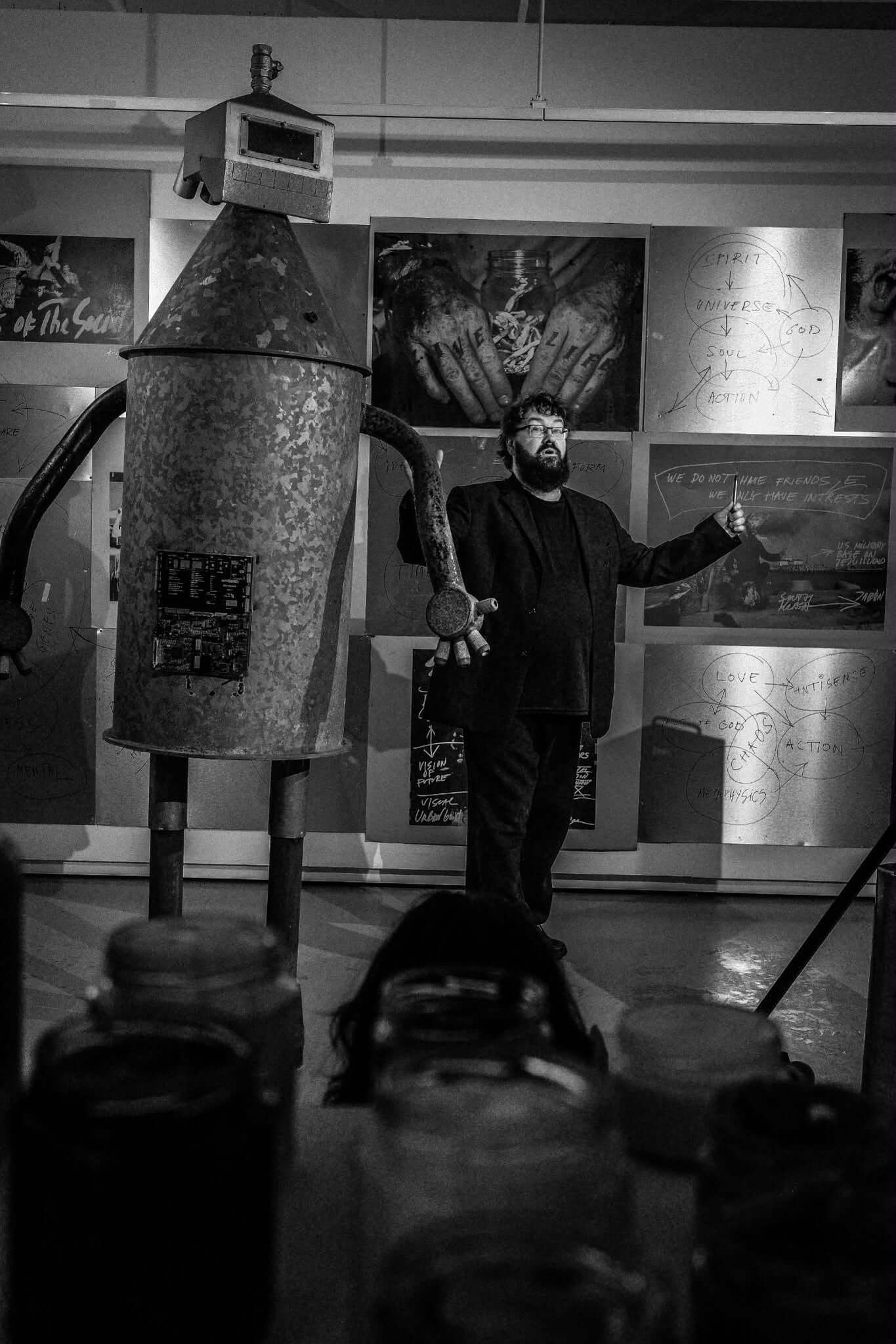 Näitusel on uusi teoseid: robotid. Need robotid on visuaalselt väga erinevad tema hiljutisest „Momentum / Monumentum“ teosest. Sada aastat tagasi vaadati modernsust ja moodsat tehnoloogiat valdavalt optimistlikult, eriti Briti, Ameerika ja Prantsuse Art Deco ookeanilaevades, raudteevedurites, autodes ja lennukites, kuid mitte Saksa ekspressionismis. Tänapäeval tekitab tehnoloogia ärevust ja hirmu: tehisintellekt võib meid eksitada ja petta. Öeldakse, et iPhone’il on rohkem arvutusvõimsust kui kogu NASA-l, kui nad 1960. aastatel inimest Kuule saatama hakkasid. Me kardame moodsat tehnoloogiat jälgimisvahendina ning pelgame, et tehisintellekti robotid asendavad kõik töötajad. Me kardame sotsiaalmeediat nii palju, et tehakse kiireid samme selle keelustamiseks alla 16-aastastele. Kas see hirm on vaid vana rämps uues kuues?
