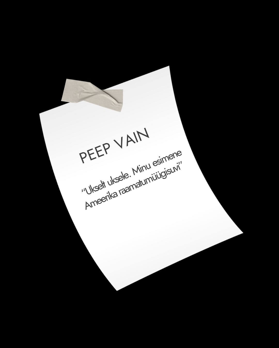 Julge ja kaasahaarav lugu sellest, kuidas 1990. aastal Ameerikas ukselt uksele raamatute müümisest sai 22-aastase Peep Vainu jaoks eneseleidmise teekond. Uskumatult aus, kohati naljakas ja läbinisti inimlik raamat näitab, kuidas ületada oma hirme, tõusta pärast kukkumisi ja leida jõudu edasi liikumiseks – lõpuni välja. Noor Peep Vain võtab meid kaasa uude maailma, kus iga päev on täis väljakutseid: võõrad uksed, tõrksad koduperenaised, ärritunud politseinikud, äraütlemised, kultuurišokk, üksindus ja lugematud ebaõnnestumised. Vain jagab meiega ausalt ja ilustamata hetki, mil tahtis alla anda, kuid leidis endas jõu edasi minna.